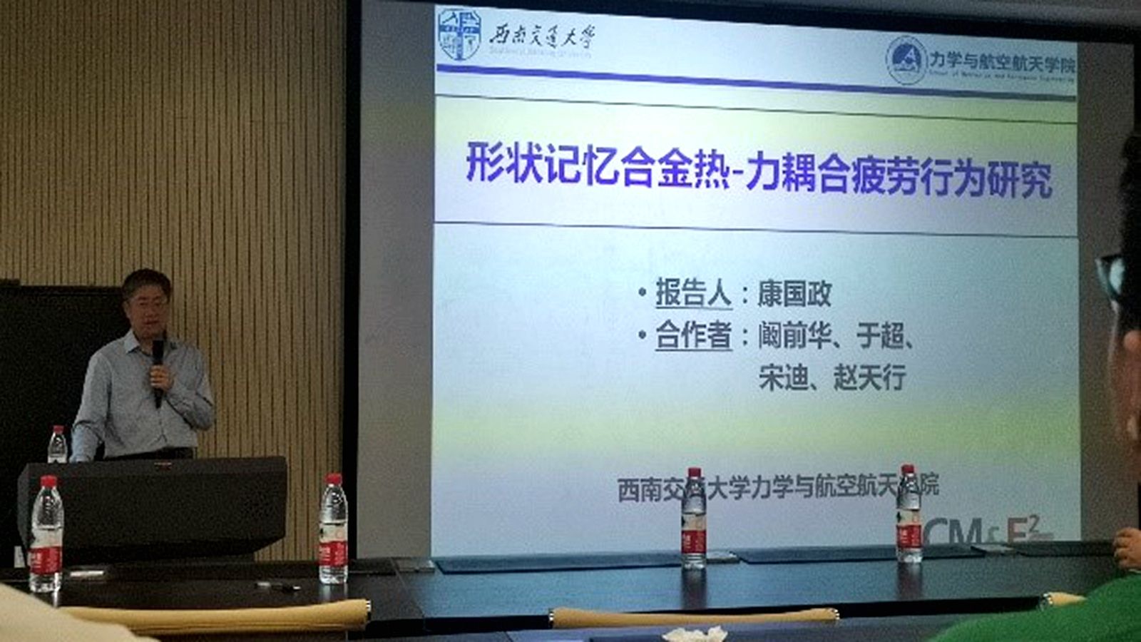 对四位专家的到访表示热烈欢迎,并对报告人做了简要介绍。戴兰宏教授是国家杰出青年基金获得者、新世纪百千万人才工程国家级人选、入选中科院百人计划,享受国务院政府特殊津贴。曾任力学所学位、学术委员会主任,现任中国力学学会副理事长、《力学进展》主编、中国科协爆炸力学首席传播专家。刘彬教授现为国际期刊《Forces in Mechanics》主编,《力学学报》副主编及《International Journal of Plasticity》和《Journal of Computational and Theoretical Nanoscience》编委,曾获国家杰出青年科学基金,国家自然科学二等奖,中国力学学会自然科学一等奖,中国力学学会青年科技奖,教育部新世纪人才计划,德国洪堡奖学金。康国政教授现任西南交通大学副校长,是国家杰出青年基金获得者(2010),教育部“长江学者”特聘教授(2015-2020),国家级领军人才(2015),德国“洪堡”学者(2009)。2010年获教育部自然科学二等奖1项(排名1/8),2012年入选享受国务院特殊政府津贴专家。汪越胜教授2000年获国家杰出青年科学基金,2007年受聘长江学者特聘教授,2010年入选新世纪百千万人才工程国家级人选。现担任国家自然科学基金委创新研究群体负责人、《固体力学学报》英文版副主编、中国力学学会监事和固体力学专委会副主任、中国材料研究会超材料分会常务理事、北京力学会理事长、教育部高等学校力学类专业教学指导委员会委员、国务院学位委员会第八届力学学科评议组成员。