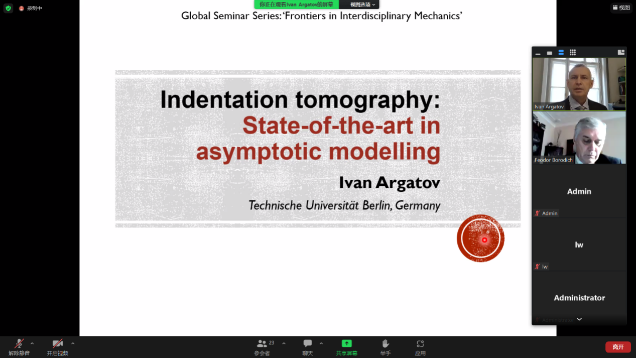 (RAS)外籍院士Fedor Borodich教授开展了主题为“Recent Advances in JKR Theory of Adhesive Contact”的学术讲座,以及Ivan Argatov教授开展了主题为“Indentation tomography: State-of-the-art in asymptotic modelling”的学术讲座。