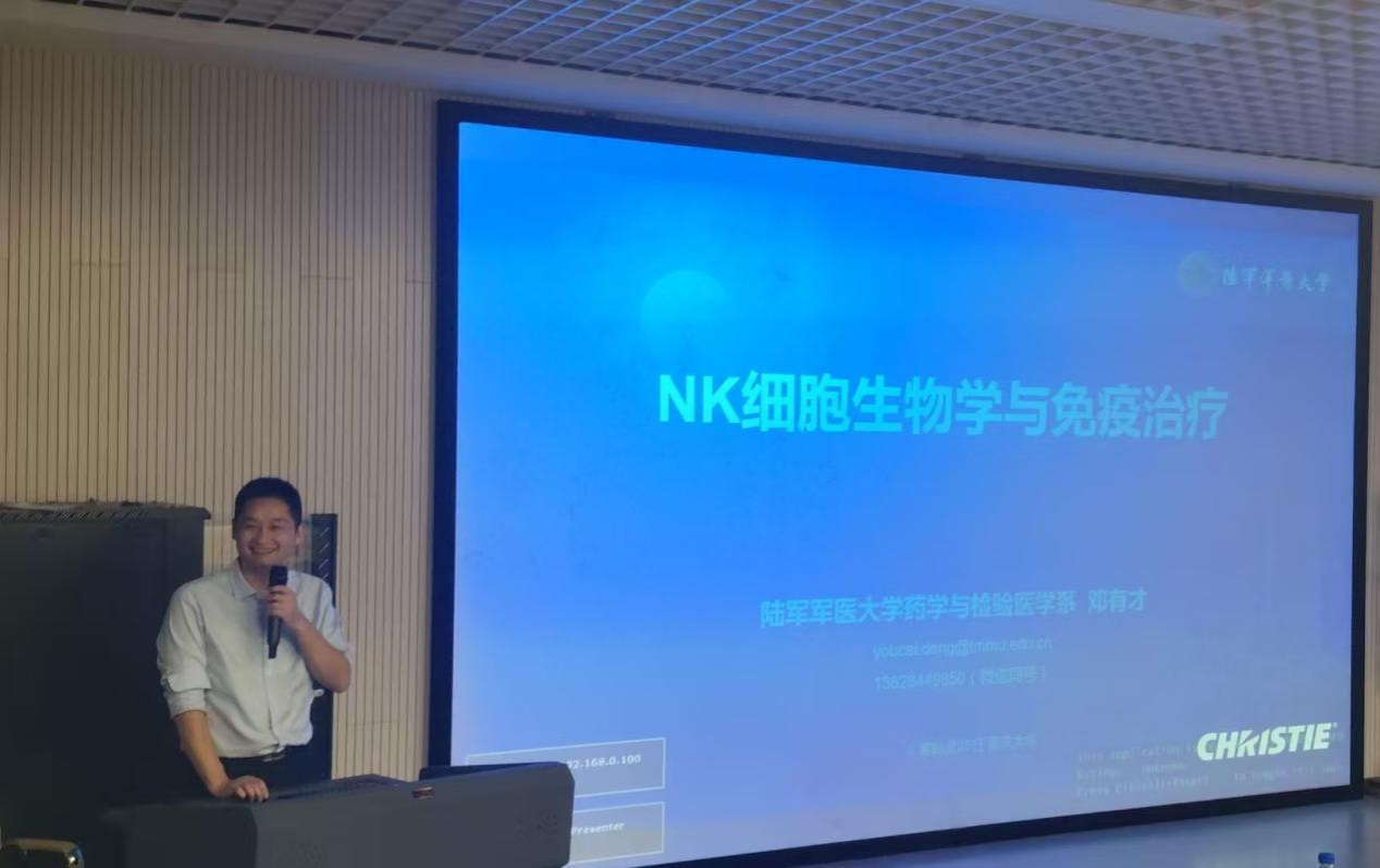 邀请,陆军军医大学药学与检验医学系邓有才教授出席工程学部主办的工程科学前沿讲坛,在理科楼010会议室作了题为 “NK 细胞生物学与免疫治疗” 的学术讲座。报告由pg麻将胡了试玩